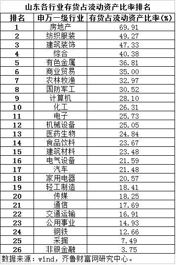主营业务和经营模式是园城黄金(600766)存货资产比率如此之高的主要原因,而纵观山东上市公司来说,行业性质在很大程度上也决定了不同上市公司该指标值的不同。齐鲁财富网研究中心对山东26个申万一级行业的存货资产比率进行了排名,发现房地产行业指标值要明显高于其他行业,达到69.91%。而不需要太多存货维持生产经营的非银金融行业,存货资产比率仅有3.75%。所以,投资者在对上市公司存货资产比率进行分析时,要考虑到行业的不同,对比分析才具有实际意义。
