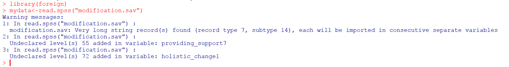 用Hmisc和foreign包导入SPSS数据时都出现图中这个warning,看不懂什么意思,求大神解读。