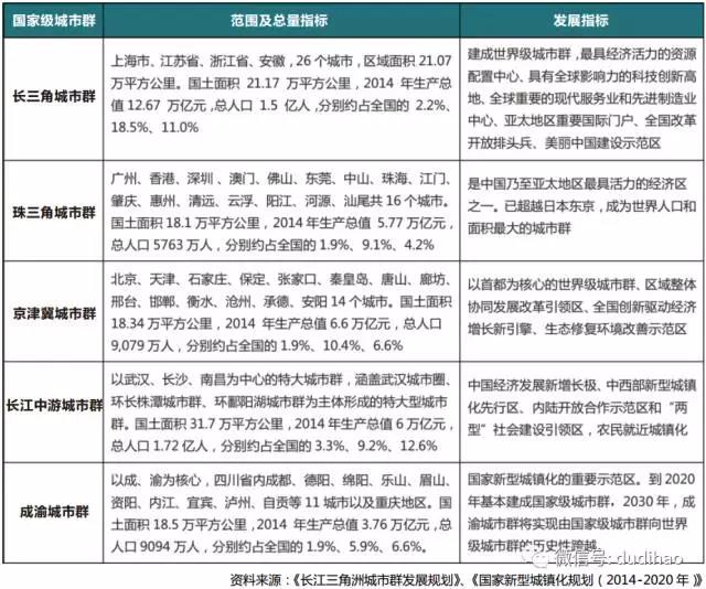 “十三五”规划中指出,国务院提出未来将加快城市群建设发展,打造京津冀、长三角、珠三角世界级城市群,并将在全国范围内共打造19个城市群,分别为:建设京津冀、长三角、珠三角世界级城市群,提升山东半岛、海峡西岸城市群开放竞争水平;培育中西部地区城市群,发展壮大东北地区、中原地区、长江中游、成渝地区、关中平原城市群,规划引导北部湾、晋中、呼包鄂榆、黔中、滇中、兰州-西宁、宁夏沿黄、天山北坡城市群发展,形成更多支撑区域发展的增长极。