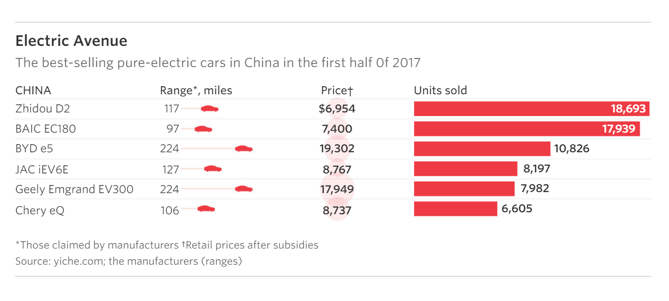 The best-selling pure-electric cars in China in the first half 0f 2017