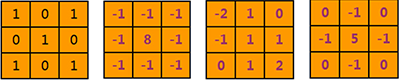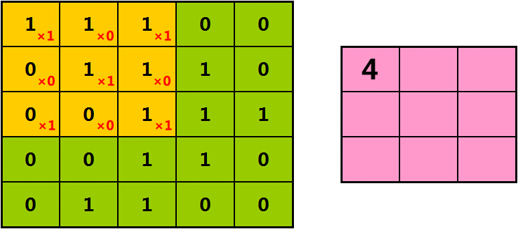 我们用橘色过滤器中的每一个值,与绿色矩形框中的对应值相乘、再相加