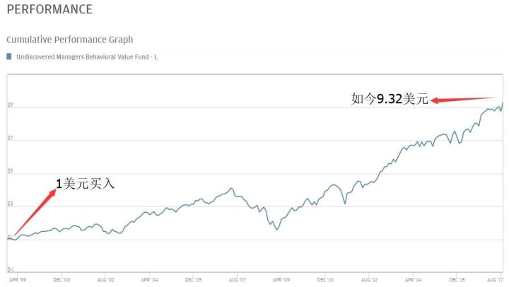 在理查德·塞勒联名的基金公司,旗下基金Undiscovered Managers BehavioralValue Fund (UBVLX)的业绩从基金成立日1998年12月28日开始计算,若当时投入10000美元,到今年9月底就会有93244美元,回报率达到了惊人的832.44%;而同期伯克希尔·哈撒韦的涨幅仅有307%。比巴菲特多了500%。