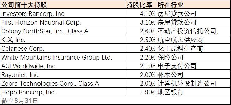 值得关注的是,尽管小盘股波动性非常高,但该基金的波动率较低,以日计算今年以来的波动率只有11.2%,而相应的小市值指数罗素2000指数基金的波动率却有14.1%。该基金截至8月底持有了93只股票,前10的基金占到仓位25%,而前25占到仓位的47%,持股较为集中。该基金的规模不大,目前60亿美元左右(大概是400亿人民币)。