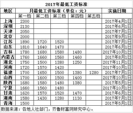 山东月最低工资标准不到2000元