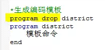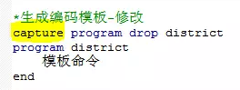 还可以把重复命令编写为一个program程序。定义program非常简单,以program filename开始,以end结束。这里把编码模板命令定义为程序district,生成编码模板命令如下图所示: