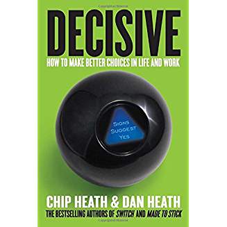 《决断力:如何在工作生活中做出更好的决策》(Decisive: How to Make Better Choices in Life and Work):这是一本关于如何做出更好的选择并拥有超强决断力的图书。国际心理学畅销书作家希思兄弟根据心理学方面的研究,得出了一系列可以影响我们决策的阻碍因素——思维狭隘、证实倾向、短期情绪和过度自信。