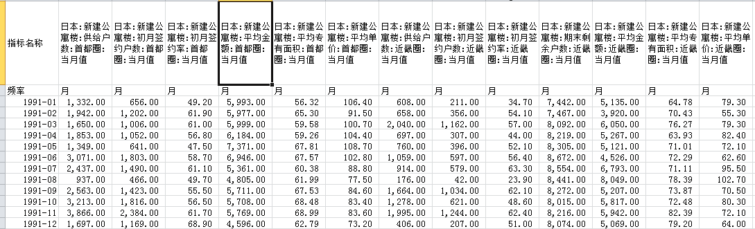1991年至2017年日本首都圈和近畿圈房屋销售数据,主要包括以下数据: