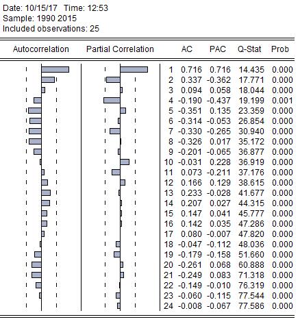 eviews自相关图和偏自相关图怎么看,这个图实在是太奇怪了