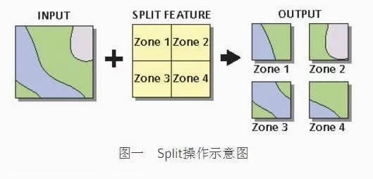 在ArcGIS的使用过程中,数据裁剪是在所难免的,不论是裁剪矢量数据还是栅格数据,ArcGIS都能很好的胜任。但是有些情况下需要对某一数据的不同部分进行裁剪,这样就需要反复进行裁剪操作,虽然最后也能达到目的,但是费时费力,现在介绍一个ArcToolbox中的工具——Split,通过这个工具可以将一个图层按照另一个图层中的某一字段进行裁剪,从而实现批量裁剪的目的。具体效果如图一所示。