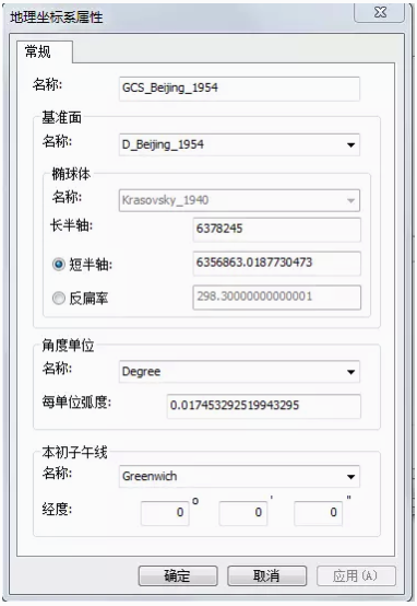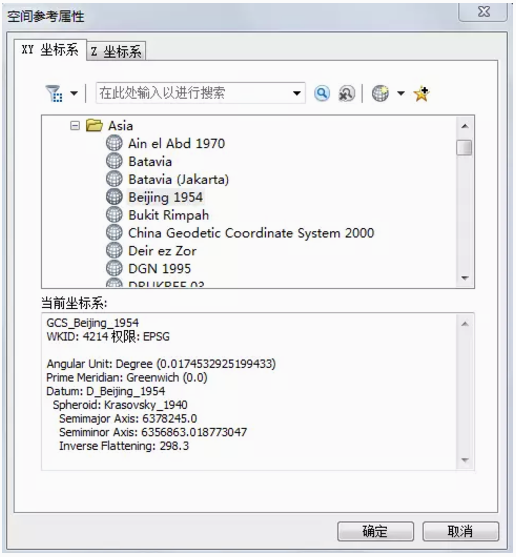 3、在坐标系中选择Beijing_1954,如图3;点击Beijing1954,出现如图4的地理坐标系属性设置界面。
