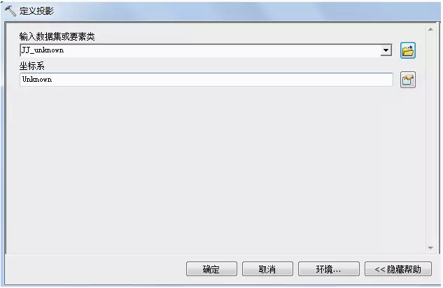 2、在ArcToolbox里点击数据管理工具→投影和变换→定义投影,出现如图2所示对话框: