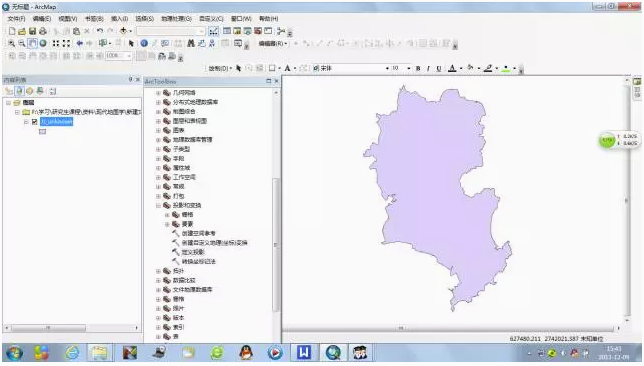 2、在ArcToolbox中选择数据管理工具→投影和变换→定义投影,出现如图所示界面,在输入要素集或要素类里选择要进行定义投影的数据china_prov,如图2。