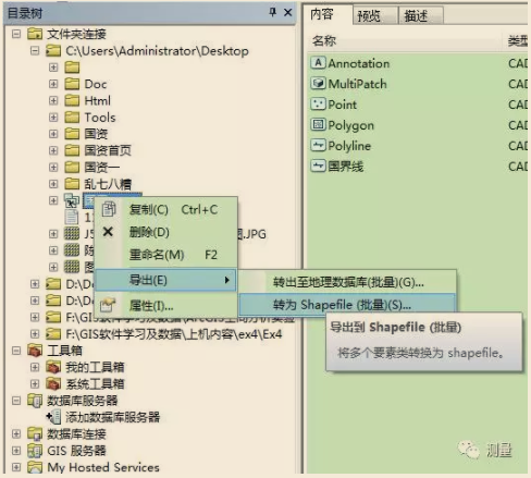 这是一种非常繁琐的方法。然后可将转换的shape文件加入至相应的地理数据库。