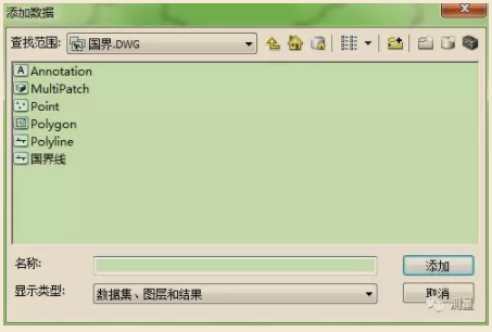 在arcmap 选择文件的窗口单击cad文件,