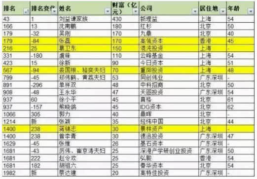 根据胡润的排名,张磊以150亿元的财富名列中国顶尖风险及股权投资人排行榜。复星的郭广昌,以280亿元成为“点金圣手”首富,盛大的陈天桥,以170亿元位列第二;高瓴资本的张磊,以150亿元位列第三。