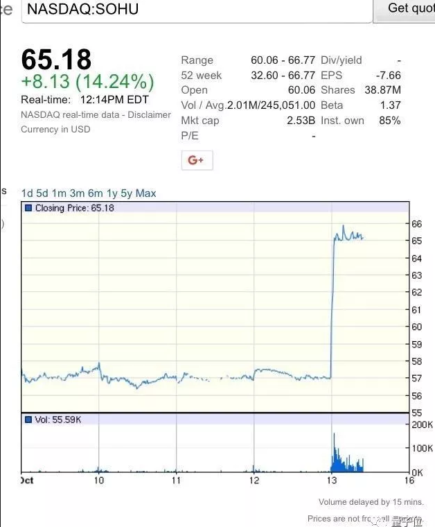 受搜狗影响,搜狐股价今晚开盘大涨。大吉大利~