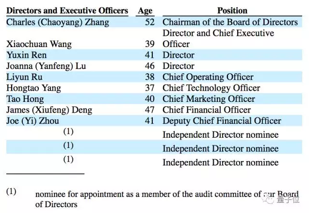 招股书中列出的搜狗管理层,包括CEO王小川,2016年任命的COO茹立云、CTO杨洪涛、CMO洪涛、以及2017年7月任命的CFO邓秀峰和副CFO(Deputy Chief Financial Officer)周毅。