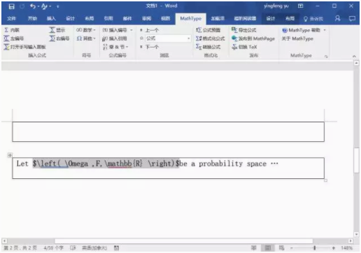 首先,第一步,我们首先用Mathtype做一下以下这张图片的公式。当然,如果你足够细心,你会说:“概率空间不该是(omega,F,P)吗?概率不该是P吗?你怎么打一个R在这里?”