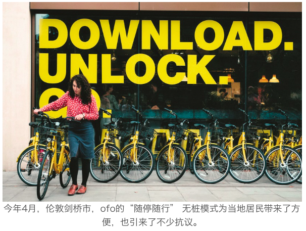 在ofo的设想中,剑桥是一个理想的共享单车试点。这是一座以“校园”为核心的城市,拥有较高的骑行率。除了意味着下行风险可控,校园也几乎满足了共享单车此前在国内验证过的五大要素——高频、刚需、低替代性、低成本以及封闭环境。今年4月,伦敦剑桥市,ofo的“随停随行”无桩模式为当地居民带来了方便,也引来了不少抗议。