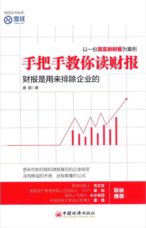 一本是雪球大V唐老师的《手把手教你读财报》。这本书刨去了会计、注会中很多晦涩难懂的定义解释,用通俗易懂的语言和上市公司例子,对财报中常见科目进行了详细解读,同时贡献了唐朝自己投资的方法论,能帮助财务基础比较弱但又希望通过上市公司财报筛选好公司避开垃圾公司的小白们快速上手,用较短的时间学会分析上市公司财报中可能造假的坑,简直实用高效。