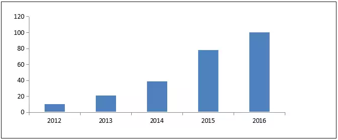 2012年—2016年我国3D打印行业市场规模(亿元)