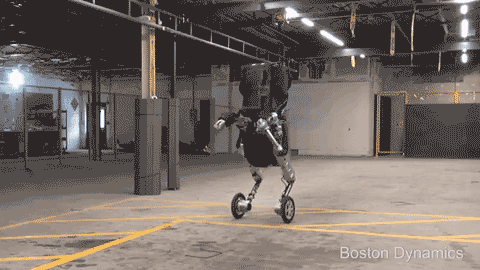 这是美国谷歌旗下波士顿动力公司最新发布的一款名为Handle的机器人,把足+轮式的能力直接拔升到了一个闻所未闻的高度。