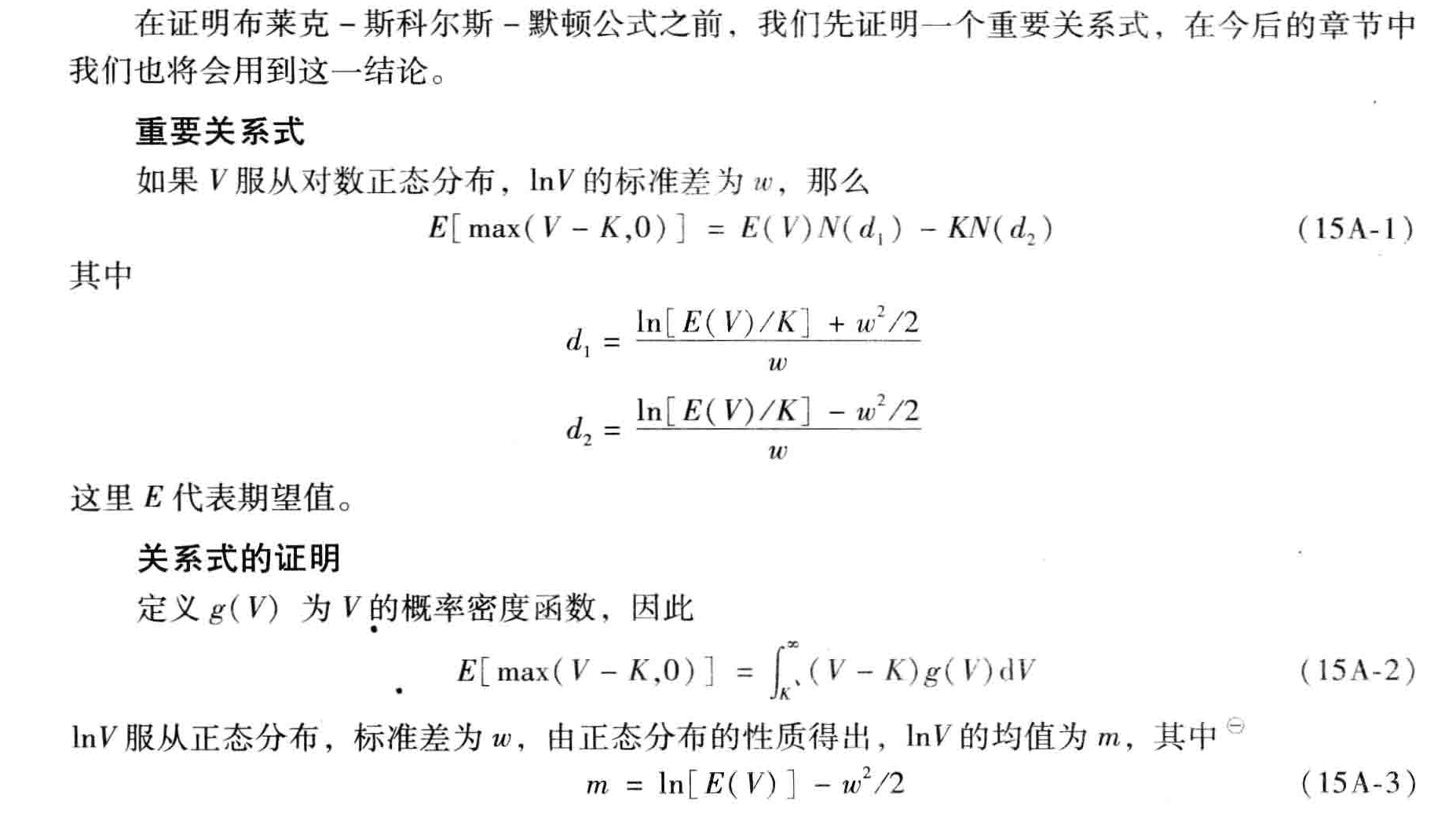 最近在阅读布莱克斯科尔斯模型对于期权定价推导,其中有个关于正态分布的推论(如下图中 15A-3这个推论)的引用,不甚理解,为何会有这样的推论,这个推论说明了正态分布一个什么样的规律?不知道有无大侠给予点拨与指导,谢谢先!