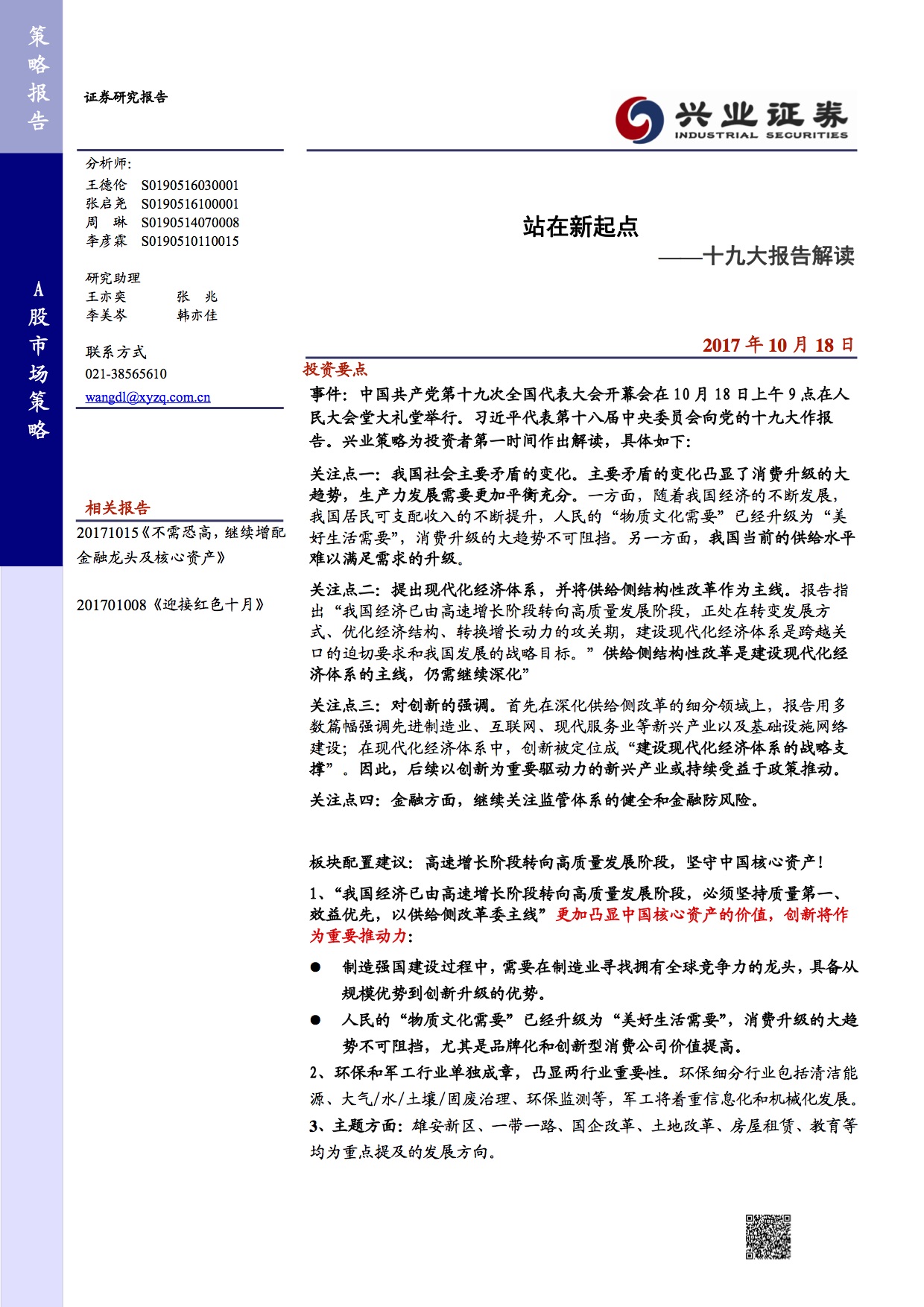【独家发布】【行业研究】20171018-兴业证券-兴业证券十九大报告解读:站在新起点