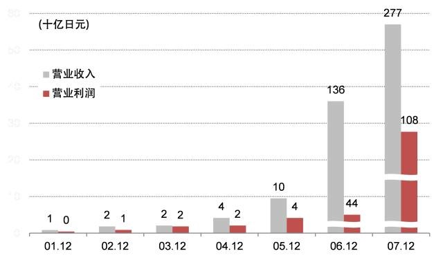 达芬奇投资顾问的业绩,从01年的8亿日元的营业额、4亿日元的营业利润,到07年鼎盛时期的2770亿日元的营业额、1077日元的营业利润,增长速度令人咂舌。