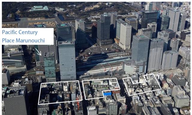 Pacific Century Place Marunouchi位于东京站东口,是上图中最右边的高楼