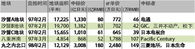 东京站东片的八重洲地块,拍出了868亿日元(合人民币52亿)的超高价,每平米1,788万日元(合人民币107万)。而竞拍前,市场各方的预估仅为450~600亿日元,中标价偏离了快1倍。