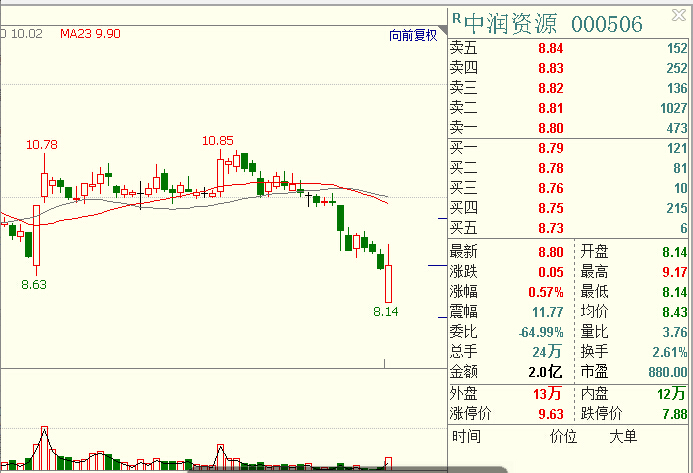 另据中润资源(000506)发布的2017年三季报预告显示,受瓦图科拉金矿本报告期内上半年进行大修减产导致黄金销售额减少以及本报告期内计提坏账准备及财务费用增加等因素影响,中润资源(000506)前三季度预亏1.42亿元至1.39亿元,,下降幅度为-2265.46%至-2227.2%,在变更实控人之后中润资源(000506)经营状况不容乐观,公司股票走势值得关注。
