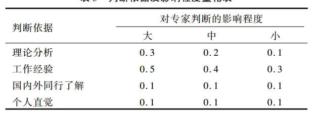 德尔菲法中有个专家权威系数的计算,其中有个表,请问这个表中的赋值是怎么来的
