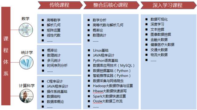 针对CDA大数据实验室,我们主推两个大的方向,一个是大数据工程师,或者说是大数据架构师,学生学习的核心课程更加接近于底层编程知识,例如Hadoop参数调优、MapReduce核心编程、Hive、Hbase、kafka等大数据工程师特色专业课程。