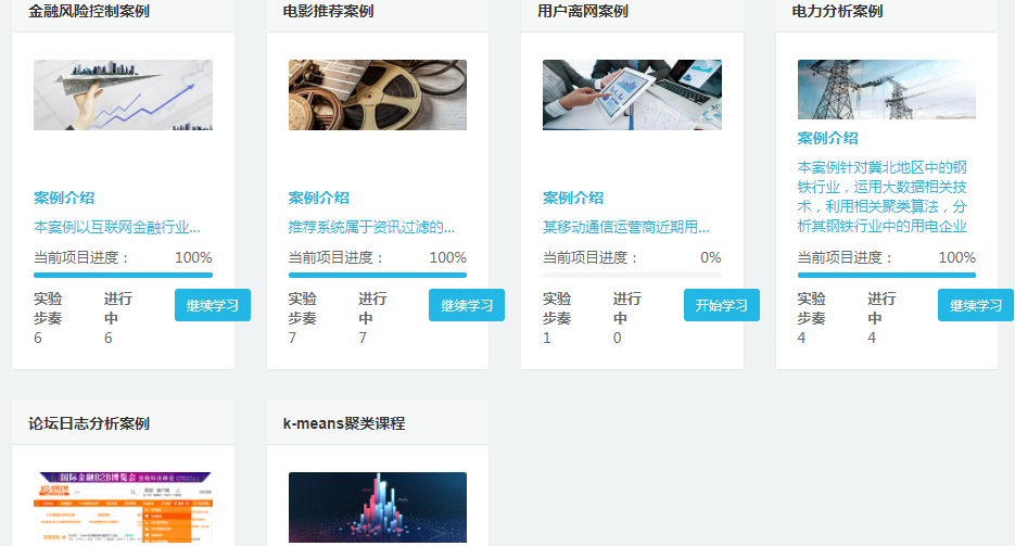向导式实训:学生可以向导式学习平台内置的商业大数据案例。
