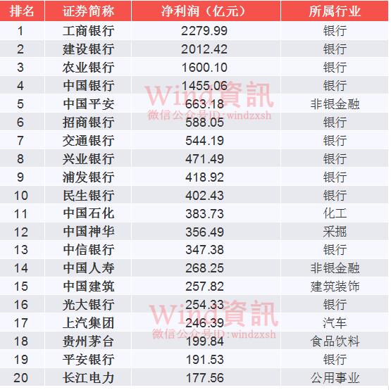 此外,笔者发现,银行类上市公司几乎赚钱能力占据了净利润前十名。前三季度净利润排在前十名的有工商银行(2279亿元)、建设银行(2012亿元)、农业银行(1600亿元)、中国银行(1455亿元)、中国平安(663亿元)、招商银行(588亿元)、交通银行(544亿元)、兴业银行(471亿元)、浦发银行(418亿元)、民生银行(402亿元)。