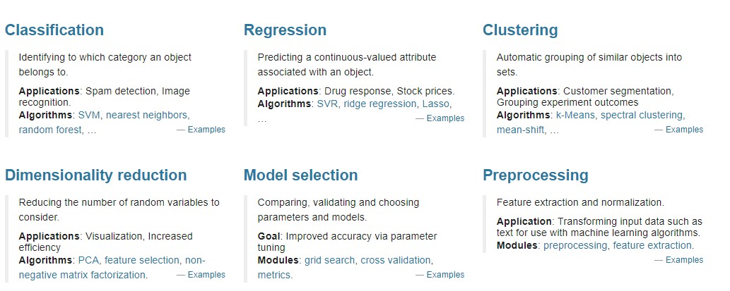 从事数据分析建模必学的包,提供及汇总了当前数据分析领域常见的算法及解决问题,如分类问题、回归问题、聚类问题、降维、模型选择、特征工程。
