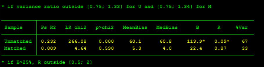 2、我将步骤3结果中显著的变量提取出来再做步骤5中的psmatch2,是否合理?红框中的note对结果会有影响吗?