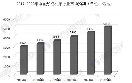就市场销售规模前景来看,2017-2022年,我国数控机床由于技术发展以及下游市场的逐渐复苏等原因,仍会保持10-12%之间的增长速度,到2022年,我国数控机床行业的市场规模将突破5000亿元。