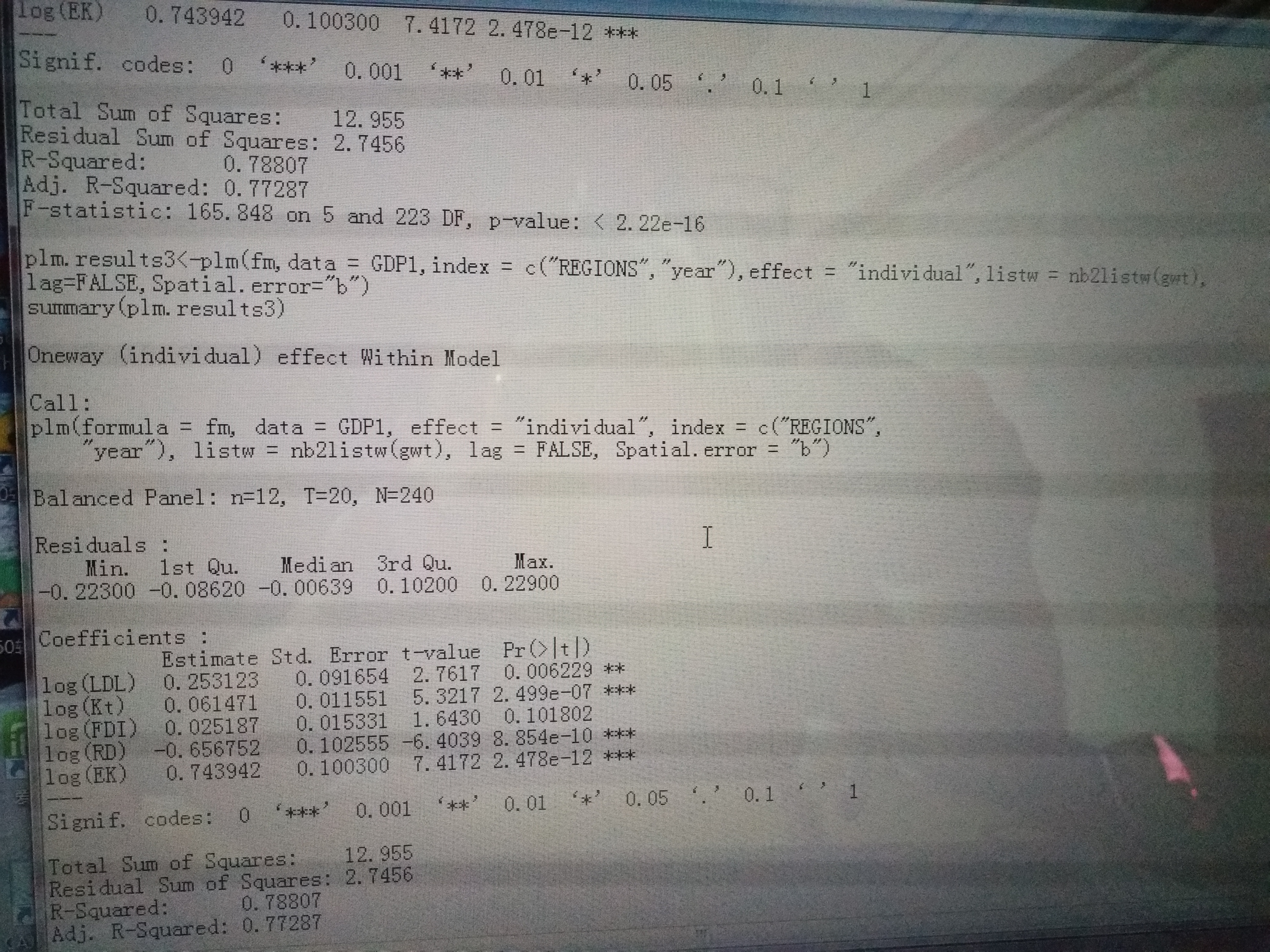 R软件做plm回归后的结果出错,求助