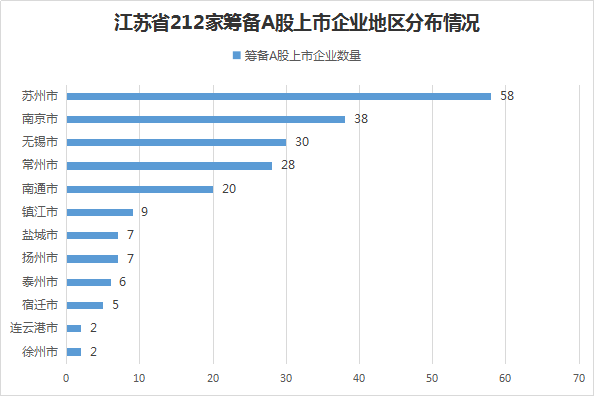 而截至2017年11月初,江苏共有212家企业位于筹备A股上市队列中,其中包括75家证监会待审核企业和137家接受证监局辅导企业。