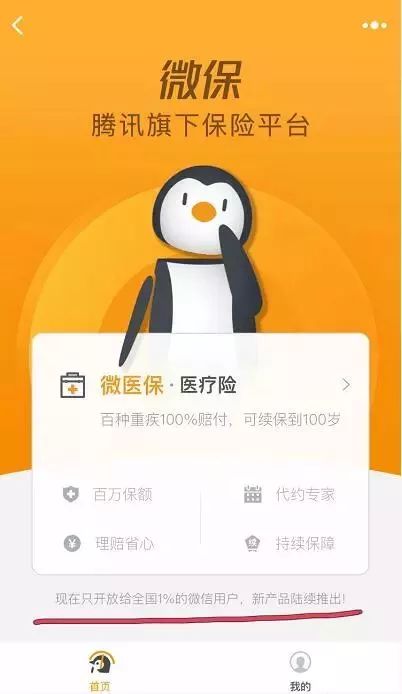 微信测试首日上线的是一款“百万医疗”健康险产品,合作的保险公司显示为泰康在线,目前仅有1%的用户可以体验此次测试。