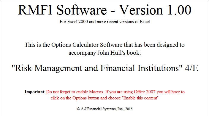 约翰·赫尔Risk Management and Financial Institutions 4th 配套软件