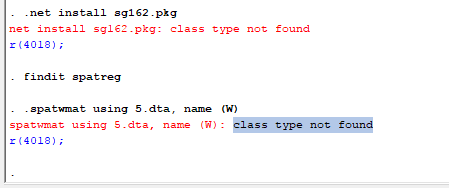spatwmat using 5.dta, name (W): class type not found