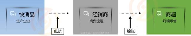 如图1所示,此场景是我们司空见惯的,我们日常生活中的快消品(啤酒、饮料、乳制品等),基本上都是由厂家通过全国各地的经销商,卖到商场、超市、便利店,为我们消费者所购买。由于生产企业处于相对强势地位,要求经销商现款现货或是以预付款形式购买商品,再发货给经销商,由经销商供给超市。由于超市从商品入库、销售、对账到结款的过程需要时间,经销商向超市供货后,通常需要3个月时间拿到结款。在这种情况下,假设经销商有100万本金,每个月给超市供货50万,第三个月就会资金断流。这就是典型的“哑铃状”供应链场景,两头大,中间小,中间的经销商是最缺钱的中小企业,是金融机构需要大力服务的群体,纵观其他行业,也是类似场景,目前供应链金融正围绕着核心企业大力发展。