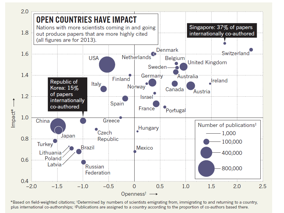 Wagner, C. S., & Jonkers, K. (2017). Open countrieshave strong science. Nature, 550, 32-33.