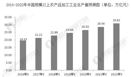 农业产业化与农产品加工市场前瞻与投资战略规划分析报告》显示,2015年全国大口径规模以上农产品加工业主营业务收入19.37亿元,同比增长5.0%,农产品加工业成为重要支柱产业和民生产业。