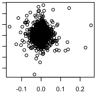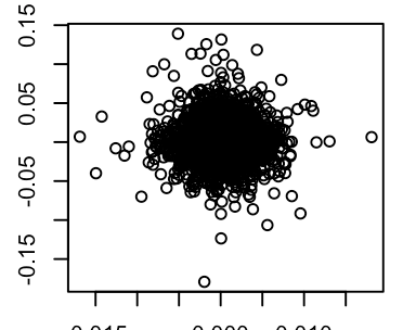 如下图,我们的response variate和covariate都是比率,所以他们的值全部集中在一起,这样的话导致最后model 的R suqared非常小,<1%,但是每个变量都是有显著效果的。