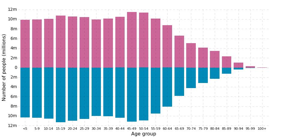 该 notebook 提供了本节使用的方法和代码:Rethinking the population pyramidhttp://www.randalolson.com/2015/ ... population-pyramid/,来自 Randal S. Olson http://www.randalolson.com/。