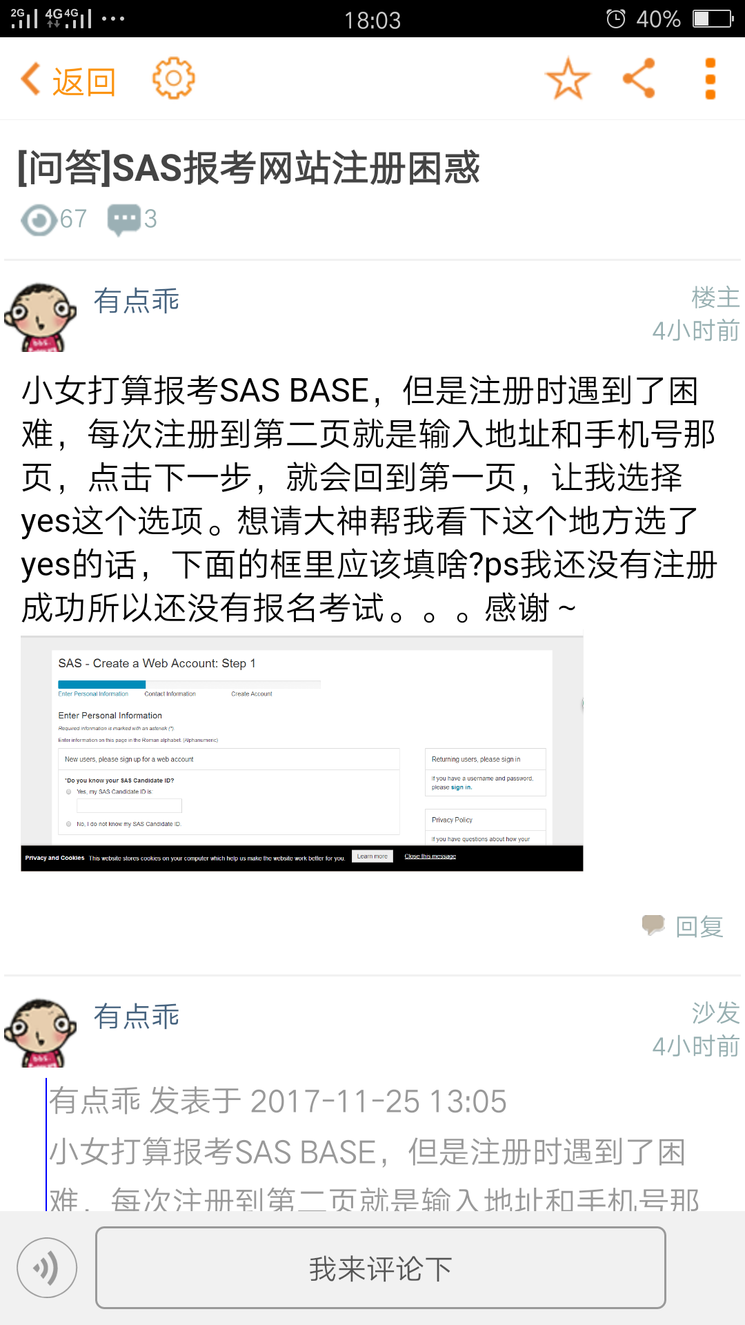 liuchengxin 发表于 2017-11-27 19:42 如果你之前没有注册成功过的话,应该选择NO这个选项再进行下一步。等你注册成功后,邮箱会收到一个SAS cand ...